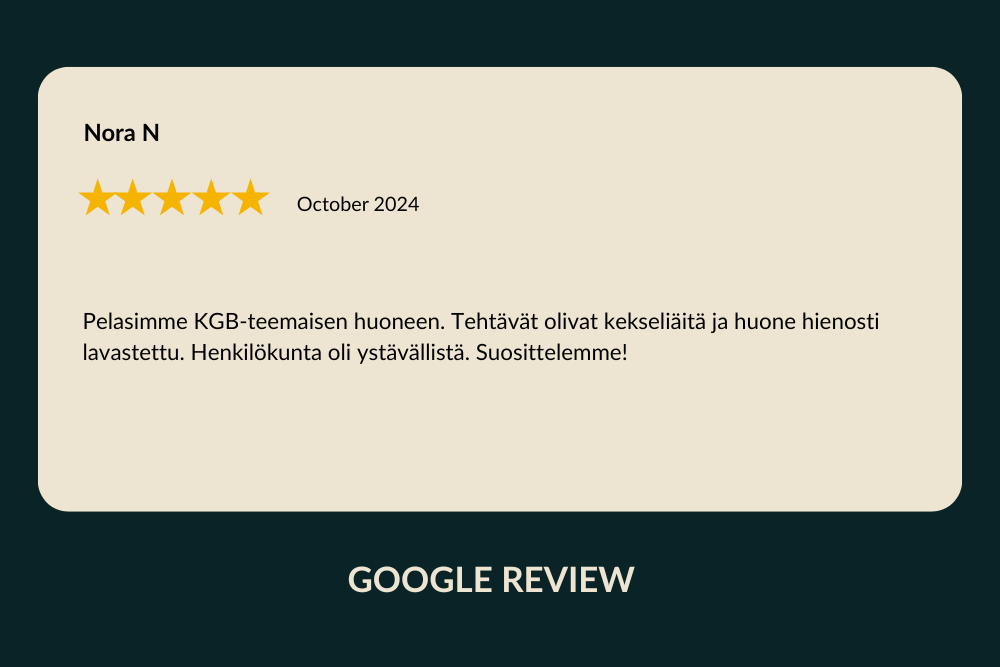 Jopa 35 henkilöä voi pelata pakopelejämme samaan aikaan joko suomeksi tai englanniksi. Yrityksille laskutus!